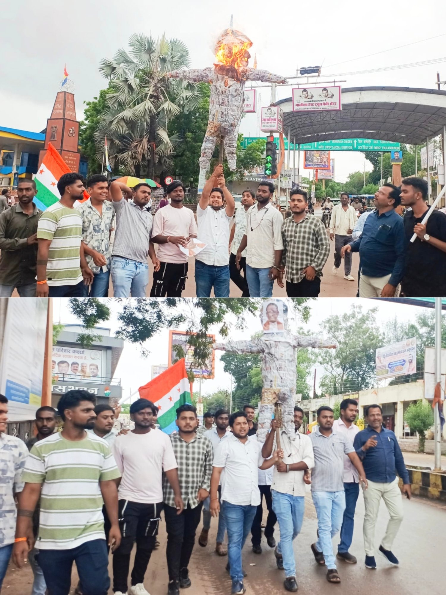 कवर्धा – आज एनएसयूआई कबीरधाम द्वारा जिला अध्यक्ष शितेष चन्द्रवंशी के नेतृत्व में बिलासपुर पीडब्लूडी परीक्षा में हुए डिजिटल नकल व धांधली के विरोध में प्रदेश के मुख्यमंत्री विष्णुदेव साय का पुतला दहन कर सरकार की शिक्षा-विरोधी नीतियों के विरुद्ध ज़ोरदार प्रदर्शन किया गया।