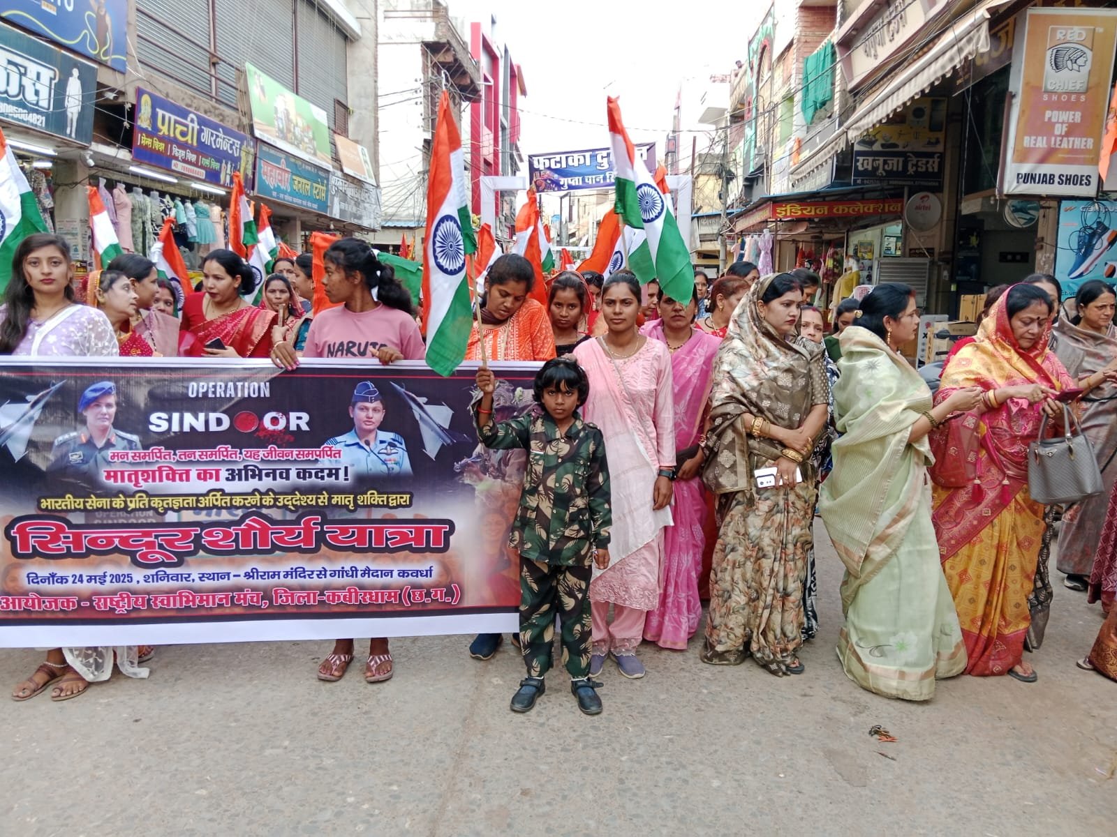 राष्ट्रीय स्वाभिमान मंच, जिला कबीरधाम के सिंदूर शौर्य सभा का मंच संचालन नम्रता मोदी के द्वारा किया गया। सिंदूर शौर्य यात्रा को सफल बनाने में सतविंदर पाहुजा, रानी पाली, लता बैस, अदिति मिश्रा , सुरेखा पाली , अदिति कश्यप, सविता ठाकुर, मनीषा साहू, मंजू पाटस्कर, आरती कौशिक आदि का सहयोग रहा।